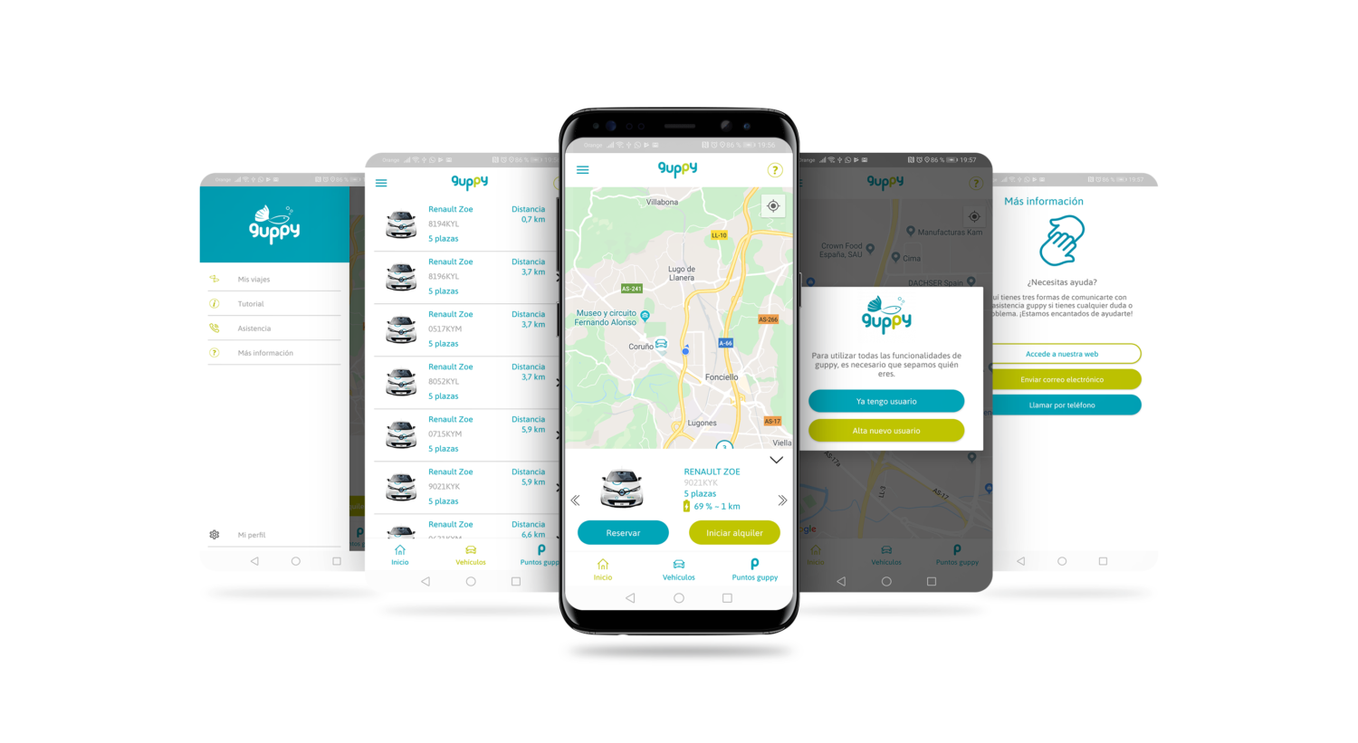 At ABAMobile we have developed the guppy app. It is the new carsharing app in Asturias from which you can rent cars and pay for the kilometers you drive.